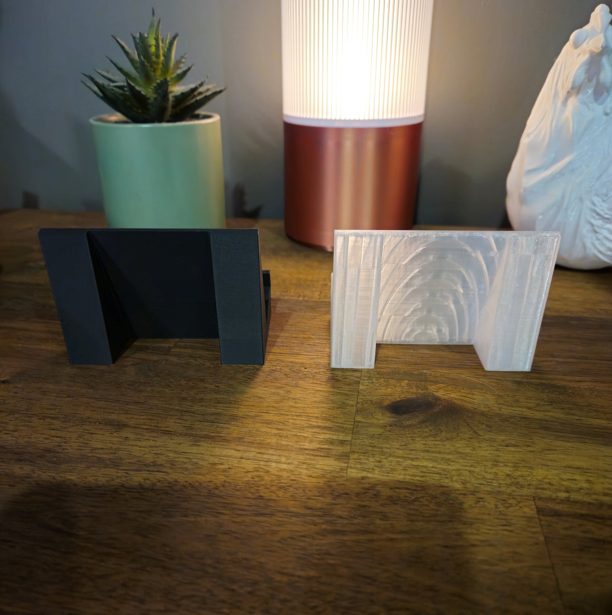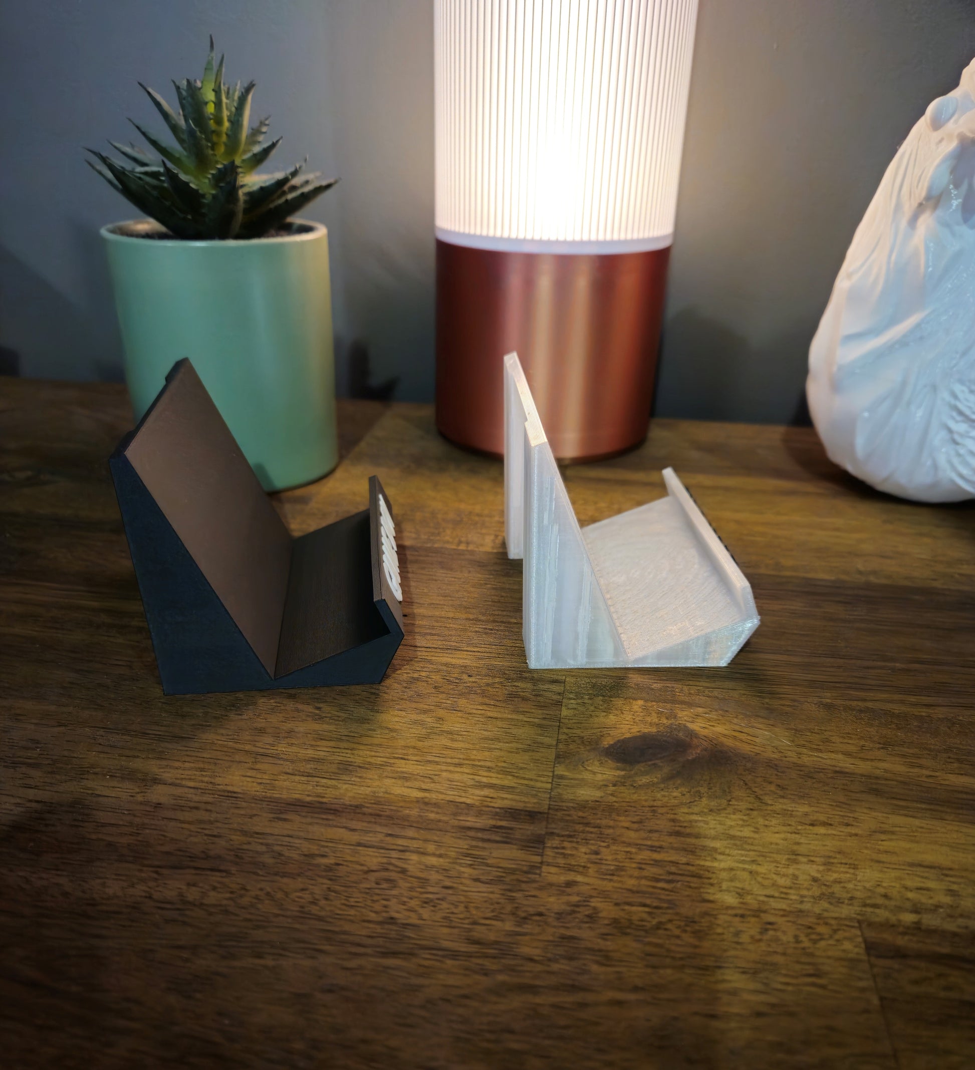 Comes in matte black with white text or translucent with black text. Keep in mind that the "clear" variant will not be fully see-through and the internal support structure will be visible - I still think it looks fantastic though.