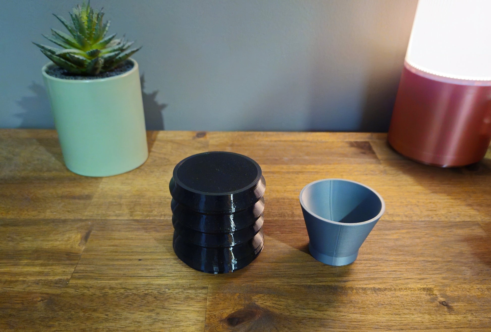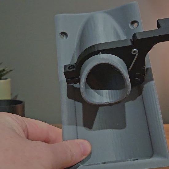 The funnel and bean collar are printed in PLA+ and will be colour matched with your selection. Angled feet and knocker are black PETG Carbon Fiber for increased strength and longevity. Bellows is flexible black TPU.