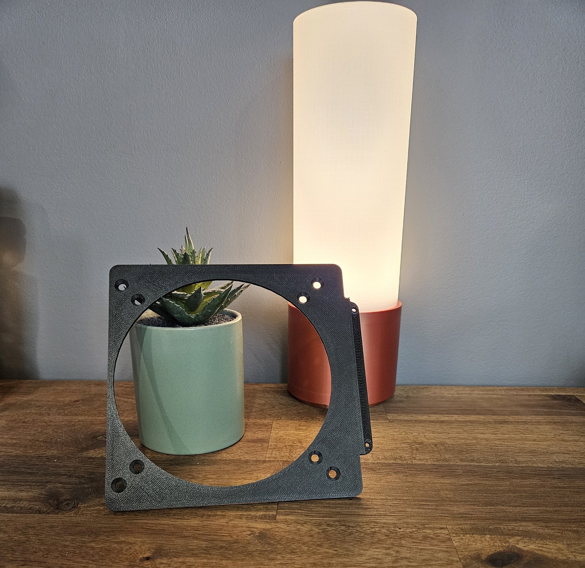 A bracket for mounting fans at the front of the M2 Grater case. Not compatible with other M2 models.