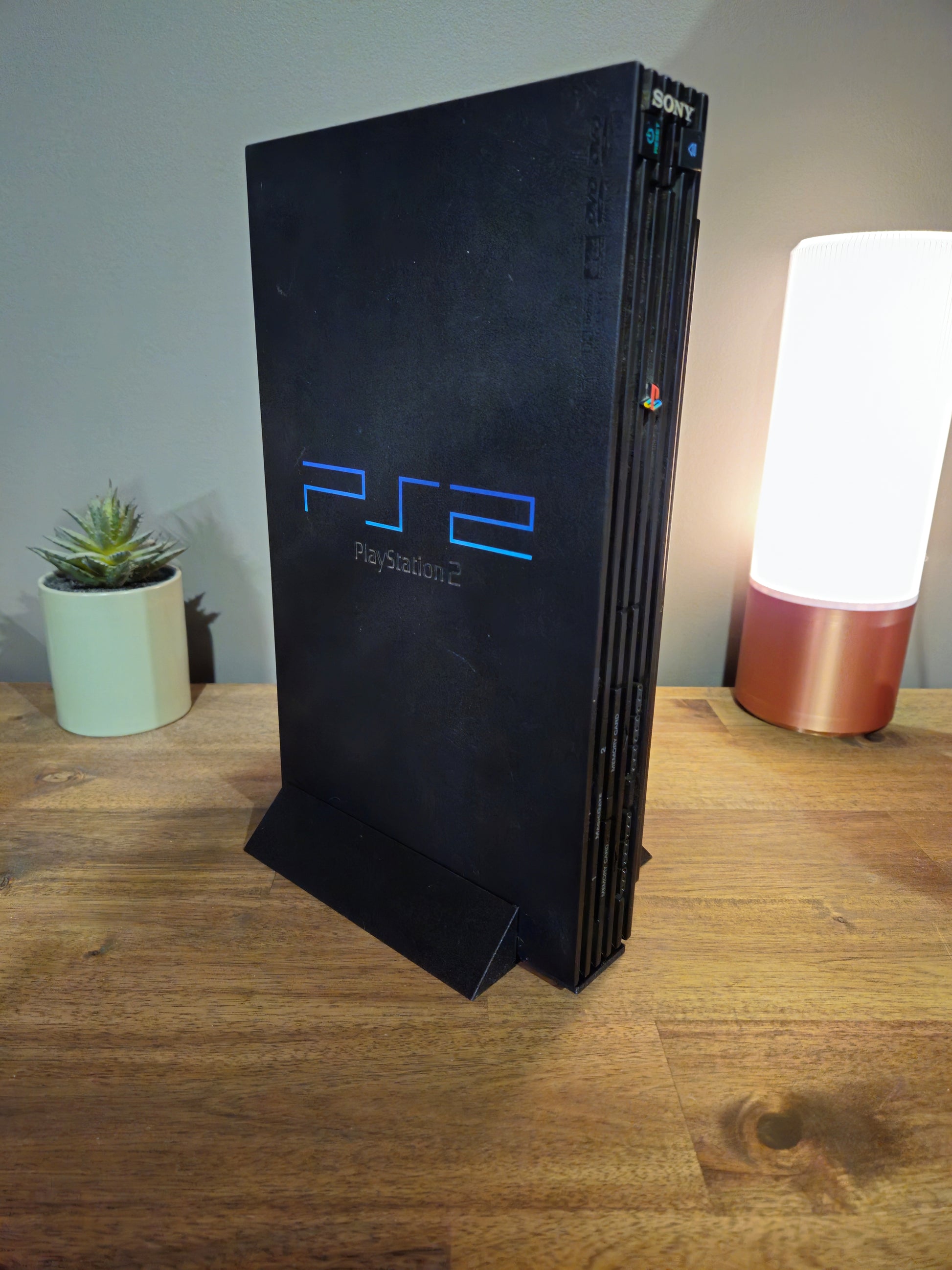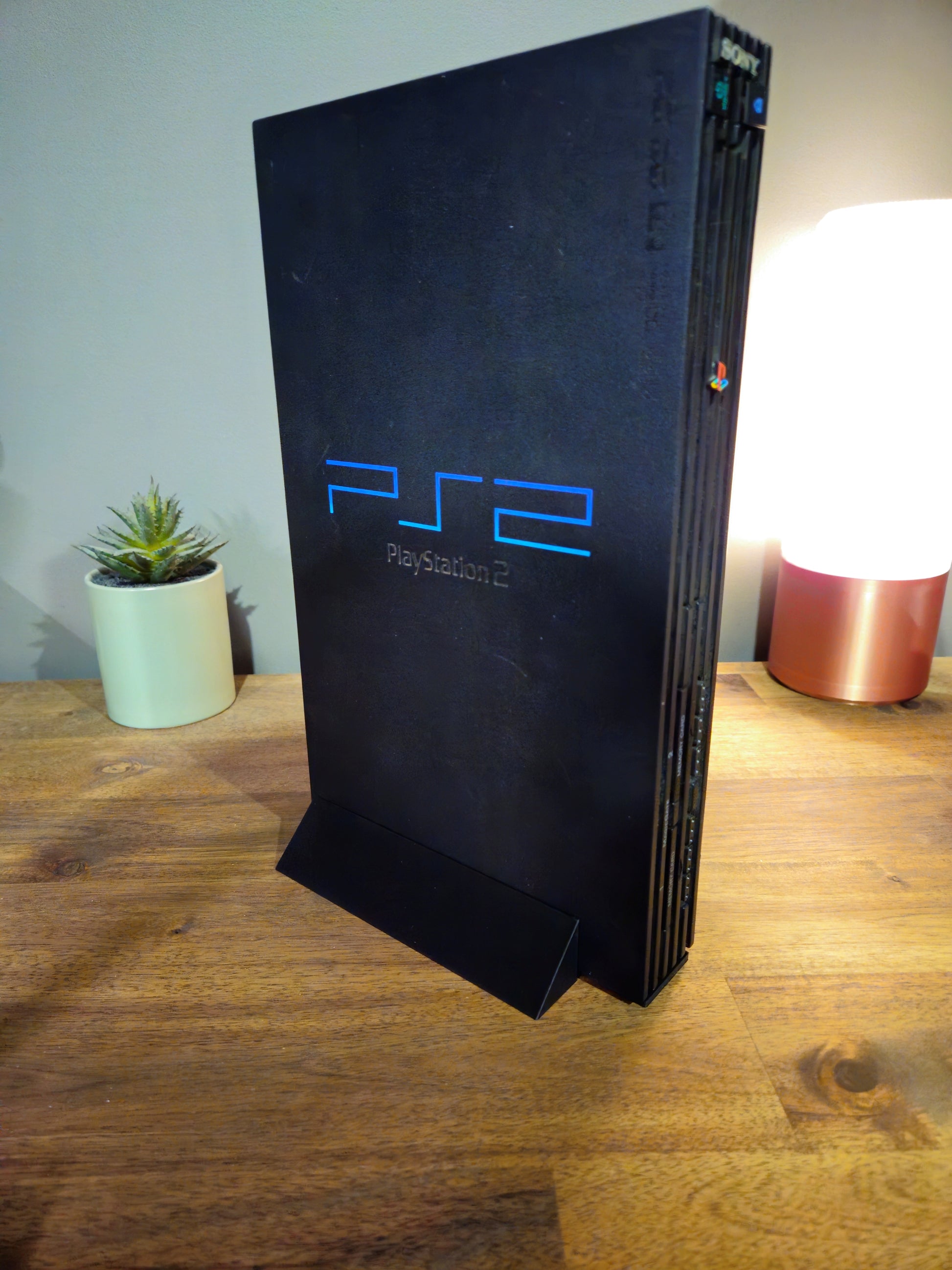 This is a reproduction of the original PS2 Stand, which has become hard to get and expensive. The dimensions are 1 to 1 compared to the original stand.