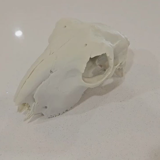This is a high quality 3d printed sheep's skull. Taken from a 3d scanned real life skull and replicated in the highest quality using bone colored printer filament and over 15 hours to print. The item is unprocessed by me but this material can be sanded and painted if you choose to.